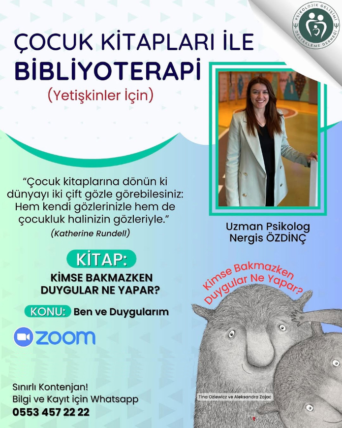 Kitaplarla iyileşmek ve psikoloji okuryazarlığı adına düzenlenecek Bibliyoterapi oturumuna ilgili herkes davetlidir.